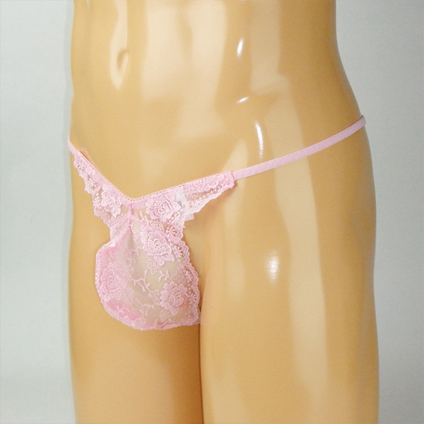> メンズ スケスケシースルーレース付き脇細Gスト ピンク M