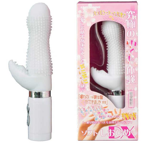 先端に内蔵されたローターが奥で激しく振動!中イキに特化したプニプニ質感の電池式バイブ(白)。子機から先っぽまで柔らかく触り心地の良いメディカルグレードTPR素材で覆い、表面には無数の突起を配置!4段階スイング×4段階の振動パターンで快感の嵐を巻き起こす♪激しいポルチオ責めに極上の潮吹き体験が待ち構える!静音設計、単4電池を4本使用