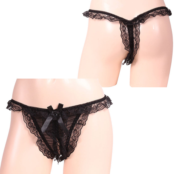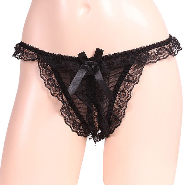 レースの揺れ感が際立つオープンショーツ ブラック