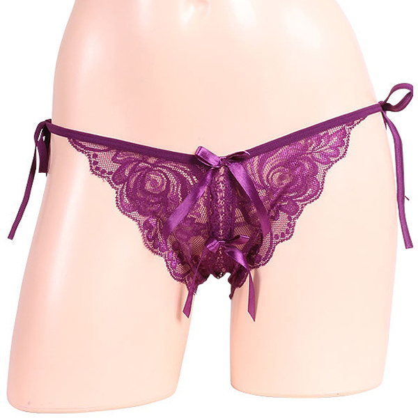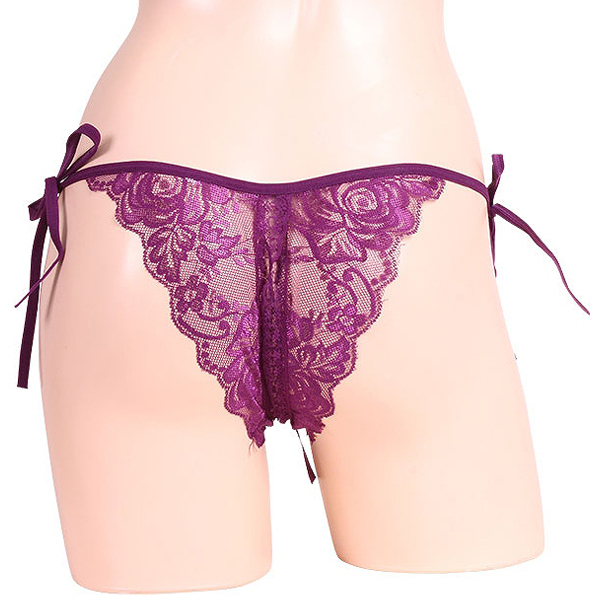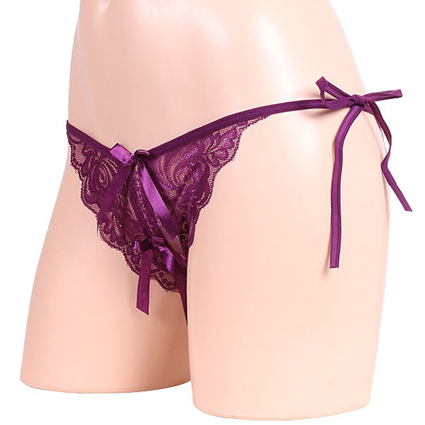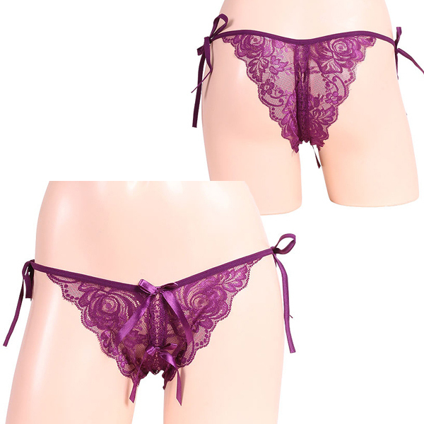 > 女らしさ満開サイドリボンオープンショーツ パープル