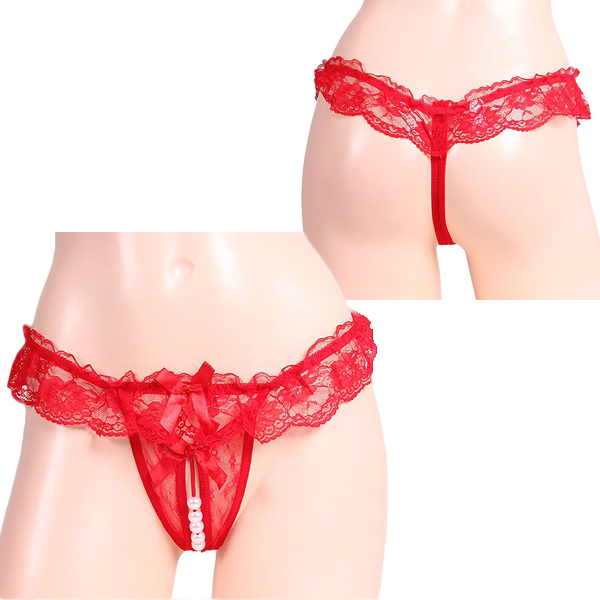 > キュンキュンうずく大粒パールオープンショーツ レッド