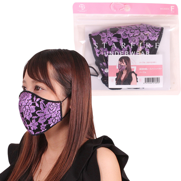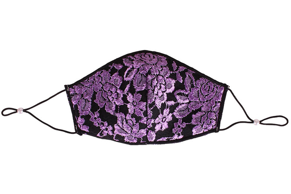 > 薔薇刺繍レースメッシュマスク パープル