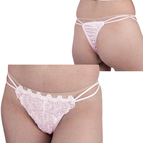 肌触りのいい光沢レース付き脇2本ゴムTバック ピンク