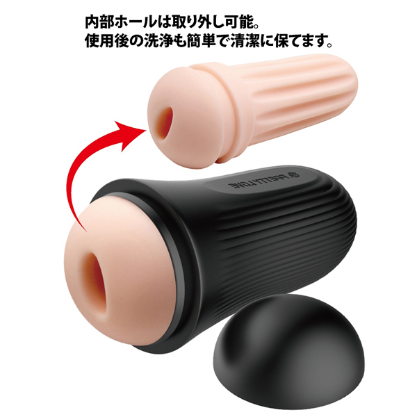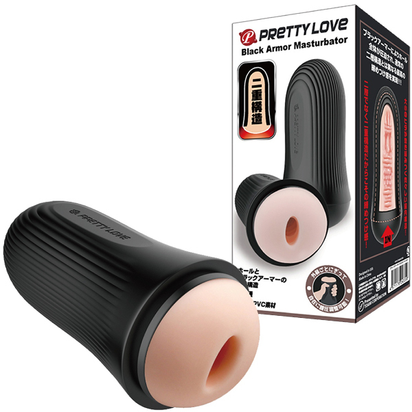 二層構造とは違う、ブラックアーマーを纏った「二重構造」だからこその締め付け感!握って内部の圧力を調整できるプリティラブの非貫通オナホ。外装は丈夫ながらもぎゅっと握れるPVC素材を、内装には肉厚で柔らかいエラストマー素材を採用!縦横、大小様々なヒダが蠢き絡む重量400gの「ブラックアーマーマスターベーター」。インナーは取り外して洗えて経済的♪ローション付