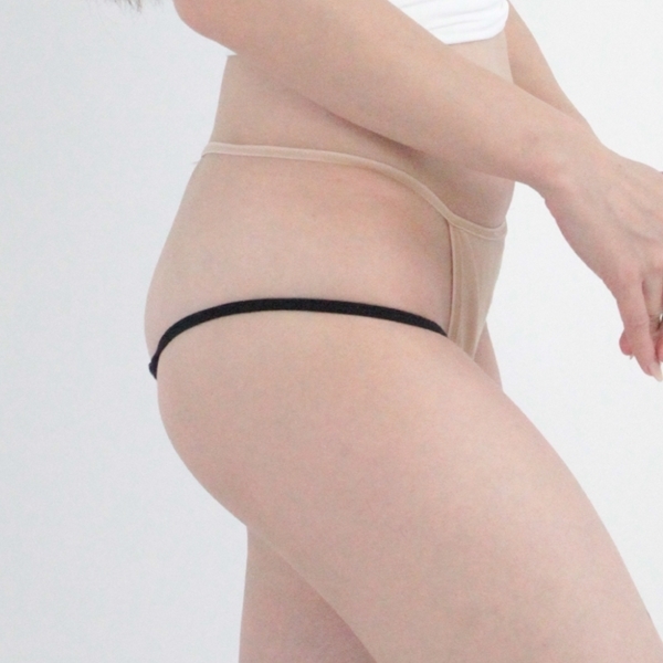 > しっとりとしたエナメル生地の脇細極小ハーフバック ブラック