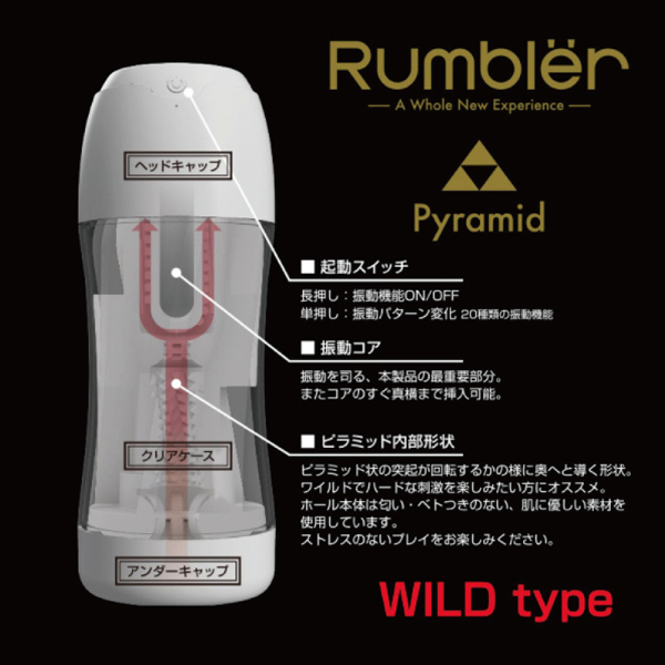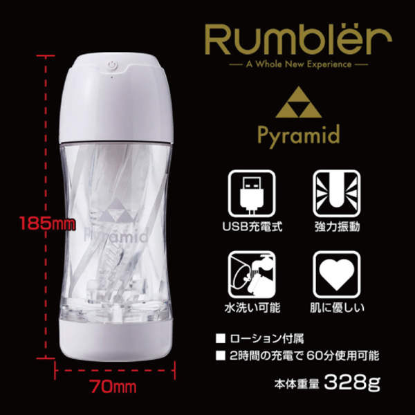 野性味あふれるハードな刺激!強力振動とピラミッド型の突起で激しく責めるUSB充電式の電動オナホ。無数の突起と20種類ものキメ細やかでパワフルな振動がシンクロして快感を倍増させる!重量は328g、夏場も涼し気な開放感のあるクリアデザイン。内部はベタつき&ニオイの無い肌に優しい構造◎ローション付き、2時間充電で最大1時間稼働、中身は取り外して洗浄可能