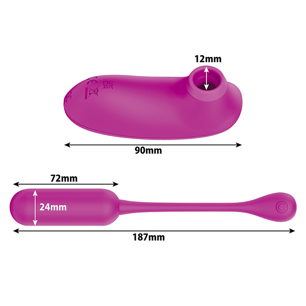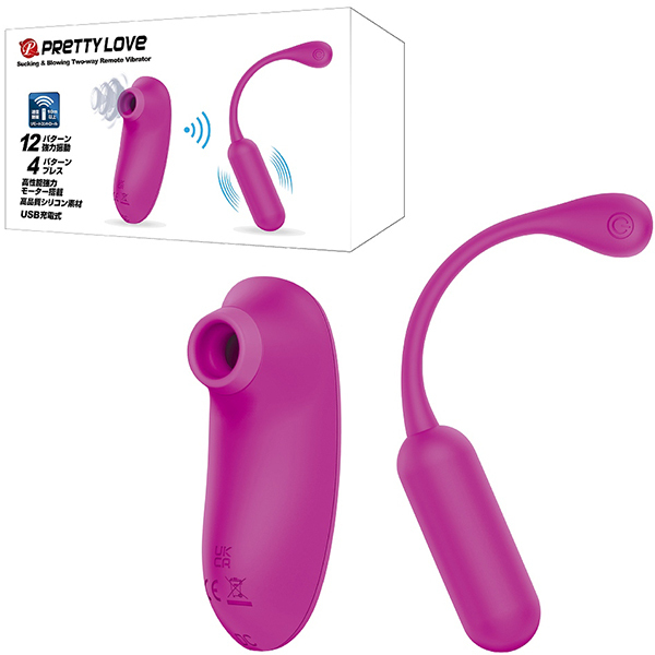 遠隔操作できるリモコンの機能も兼ね備えた「プリティラブ サッキング&ブローイングツーウェイリモートバイブレーター」。吸引ローターとの信号を受信して振動の変化を楽しめる装着型ローターがセットになった画期的な2wayセクシャルグッズ!空気圧で「吸引と吐息」を繰り返す吸引ローターとリモコン操作が可能な強力振動バイブで遠隔プレイも思いのまま♪クリ吸引機能は4パターンのプレスを内蔵し、バイブの方は12パターンの振動機能を内蔵!高品質なシリコン素材で生活防水。遠隔操作で野外で遊ぶなど幅広い用途でお楽しみ頂けます。