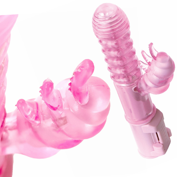 ポルチオ&Gスポット&クリトリスをマックス刺激!無間の快楽責めが続くポルチオ絶対主義バイブ!やわらかムチムチな安全エラストマー素材で初心者も安心・満足!大きめヘッドの8段もの横ヒダがもたらす絶妙な引っかかり挿入感!6連×5列の大粒パールが密着回転して、あそこを徹底的に刺激します。3段触手のついたクリバイブは、強力振動でクリを蹂躙。