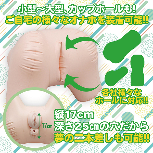 空気を注入することでリアルサイズの爆裂ヒップが完成する「オナホマジックPISTON2爆裂ヒップ」。ホールを入れるポケットはビッグサイズのオナホでもセットできる余裕のある大きさです!大小オナホの2本差しもできるヒップ型のオナホ固定具♪完成形は四つん這いで突き出したヒップだから悩ましい!これさえあれば正常位から後背位に騎乗位、駅弁や対面座位も楽しめるフォルムとなっています。各社様々なオナホールに対応できるので、大小2つのオナホをセットして異なる挿入感を楽しむのも良いですね♪