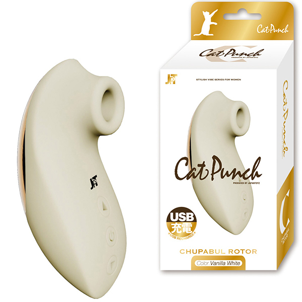 抜群の機能性とロープライスが自慢の新ブランドキャットパンチから、ハンディサイズで持ちやすいクリ吸引に特化したクリバキューマーが登場♪超静音設計のチュパチュパ吸い付くような感覚が楽しめる、チュパブル振動ローターです。9種類のプレイパターンが楽しめて、付属の充電ケーブルで充電することによりコードレスでのプレイが可能♪大きさ的にもハンディサイズで持ちやすく、「吸われる」ことに特化しているのでバイブやローターの振動系とは違った気持ちよさが味わえます。プレイボディには体に優しいHGシリコン素材を採用!生活防水対応なので清潔に保ちながら心地よくお使い頂けます。色はピュアでスイートなバニラホワイトとなっております♪