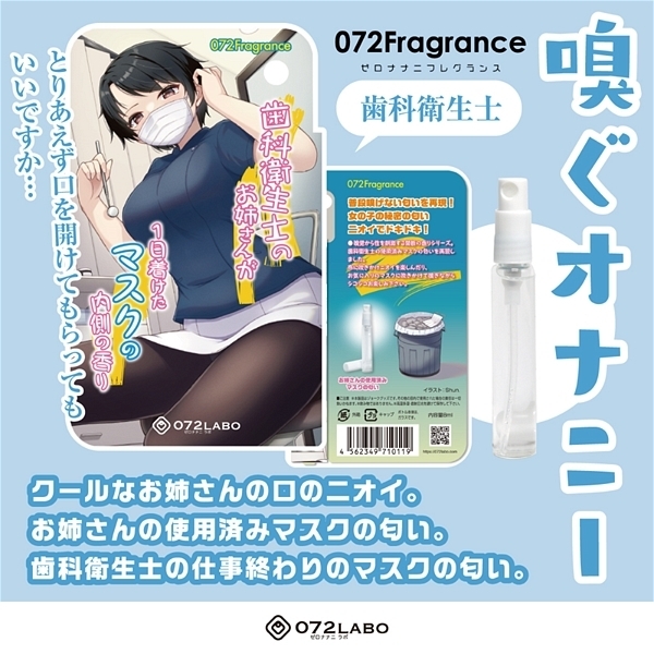 普段は嗅げない禁断の香りを再現した究極のニオイグッズ!嗅覚から性を刺激する禁断の香りシリーズから、歯科衛生士のお姉さんのマスクの内側の香りを再現♪布に吹きかけニオイを楽しんだり、お気に入りのマスクに吹きかけて嗅ぎながらシコシコ楽しんだりと使い方はいろいろ!嗅ぐオナニーであなたの性活を応援致します♪