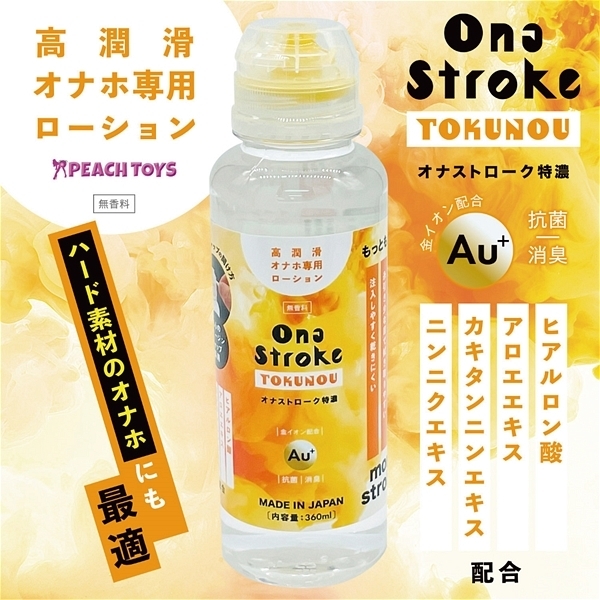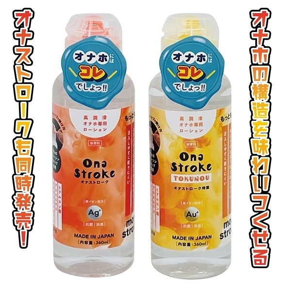 オナホールにはコレでしょう!「もっともっと!more stroke!」高潤滑オナホ専用ローションです♪「オナストローク」「オナストローク特濃」の2タイプがリリースされていて、こちらは濃厚なテクスチャタイプ。安心のヴァージンキャップを採用していて、糸引きが少なめなので扱いやすく、ハード素材のホールでも快適な滑りが楽しめます!安心の日本製でヒアルロン酸、アロエエキス、カキタンニンエキス、ニンニクエキスを配合。<成分>ヒアルロン酸、アロエエキス、カキタンニンエキス、ニンニクエキス配合