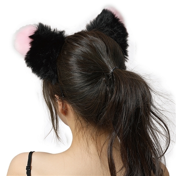 エロコス もふもふ耳カチューシャ (黒×ピンク)