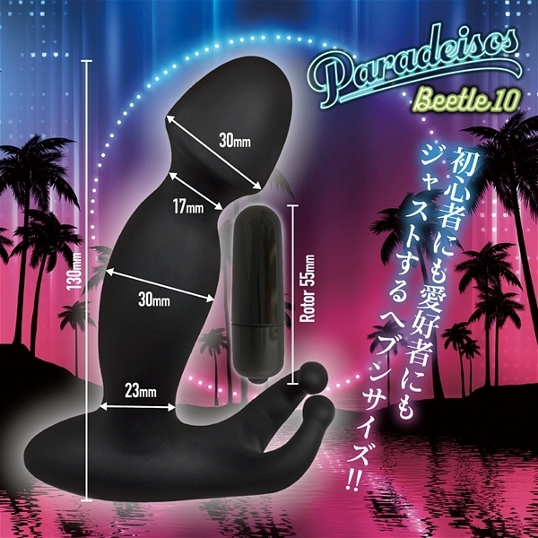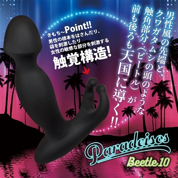 ビートル10は男性器のような形状の先端と、クワガタムシの頭のような触角部分(ビートル)をもっています。男性が使用すれば、先端部はグリグリと奥へ入り込みディルド全体が大きく振動し驚きの天国体験を味わえます。女性が使用すれば確実にGスポットを刺激して天国体験が味わえます。