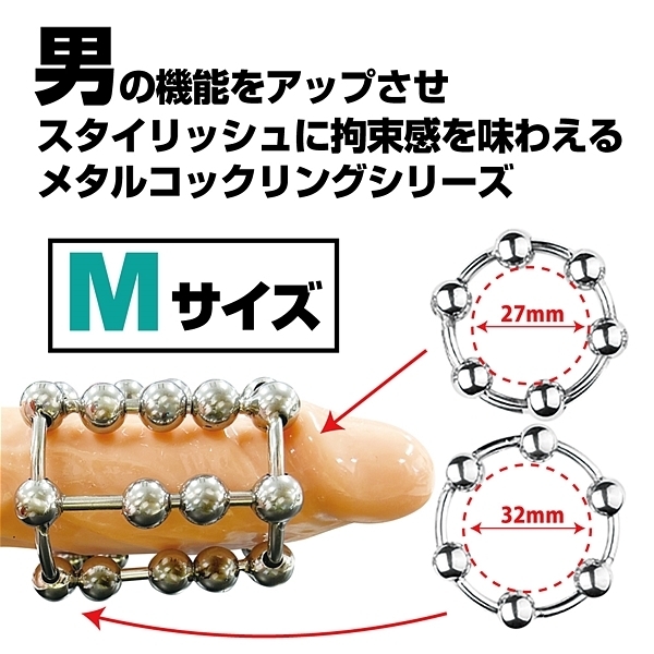 男の機能をアップさせスタイリッシュに拘束感を味わえるメタルコックリングシリーズ!中間に配置された2個と3個のメタルボールが、動く度に、上下へスライド。ファッション性と男らしさを兼ね備えたメタルリング。