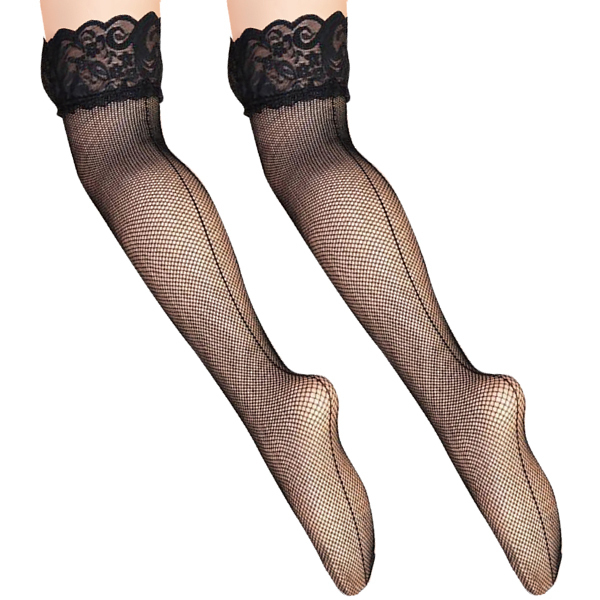 網タイプのニーハイストッキングにレースをあしらった、セクシーさ高まるストッキング。透ける素肌が色っぽさを引き立てます。普段遣いはもちろん、どんなコスチュームにもピッタリ合う定番アイテムです。