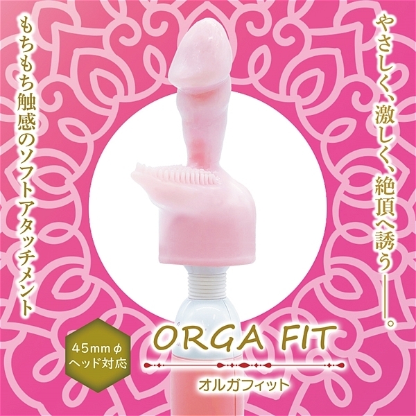 とろける快感、やわらかアタッチメント「オルガフィット」電マのパワーを存分に感じられる、可愛らしいパステルカラーの45mmヘッド対応アタッチメントです。少し小ぶりのやんちゃボーイな形は、ナカのスポットにはまる最適なサイズ。