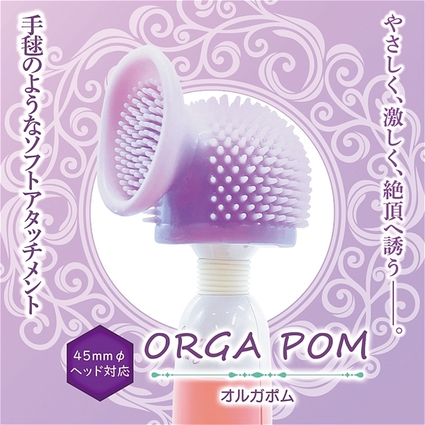 とろける快感、やわらかアタッチメント「オルガポム」電マのパワーを存分に感じられる、可愛らしいパステルカラーの45mmヘッド対応アタッチメントです。手毬のようなころんとした形に、余すところなくついた柔和な突起が、感じるポイントを優しくブラッシング。