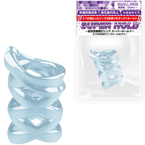 3つの連なったリングが皮戻りをがっちりホールド!継続して装着することで蒸れを抑え、清潔な状態をキープします。又、外的刺激に慣れることで早漏改善も期待できます。安全かつ高品質なTPE素材を使用しており、洗浄もしやすく衛生的にご利用いただけます。●早漏改善効果●衛生面の向上●小さめサイズ<ご使用方法>@包皮を剥き亀頭を露出させる。Aリングの開いている部分が裏筋を挟むように装着する。B包皮を伸ばしたまま残りのリングを巻きつける。3 CONNECT