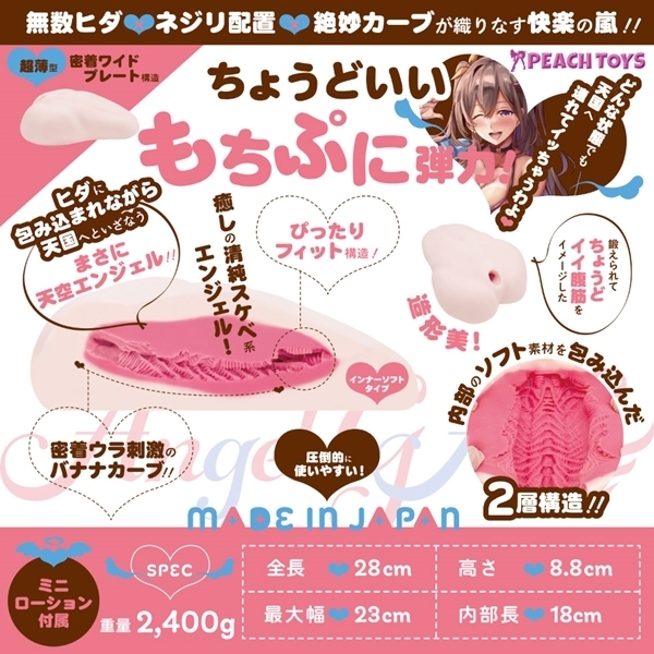 天国の快感を提供する新しい仲間です♪非貫通タイプで、ヒダに包み込まれながら天国へといざないます!無数のヒダ、ネジリ配置、絶妙なカーブが織りなす快楽の嵐をお楽しみください♪超薄型密着ワイドプレート構造で、密着ウラ刺激のバナナカーブが特徴!ぴったりフィットする構造で、最高の体験を提供します♪開発者たちがテストにテストを重ね、「コレは間違いない!」と感じた最高の体験をぜひご堪能ください!インナーソフト版は、ちょうどいいもちぷに弾力が特徴です♪癒しの清純スケベ系エンジェルが、あなたを天国へと連れて行きます!内部のソフト素材を包み込んだ2層構造で、リアルさと使いやすさを追求しました♪使いやすさやメンテナンスを重視した床オナホールで、洗浄も乾燥も簡単です!内部構造をしっかり感じながら、入口の締め付け感を減らした設計です♪完全体でなくとも、使い始めたい方に最適です!どんな状態でも天国へと連れて行く、この特別なアイテムをぜひお試しください♪