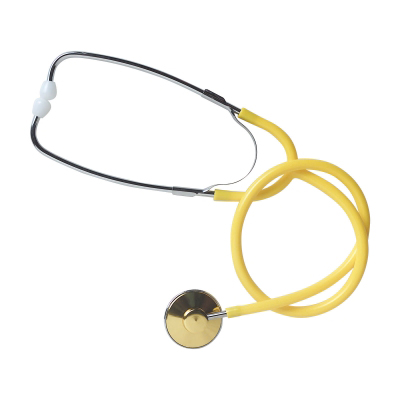 ナースごっこや、お医者さんごっこに使える聴診器「カラースコープ イエロー」です。カラフルなカラーで気分を盛り上げる!ドキドキまでちゃんと聞こえる本格アイテム!とびっきり可愛いナースに変身して、診察するのはどの患者さん?