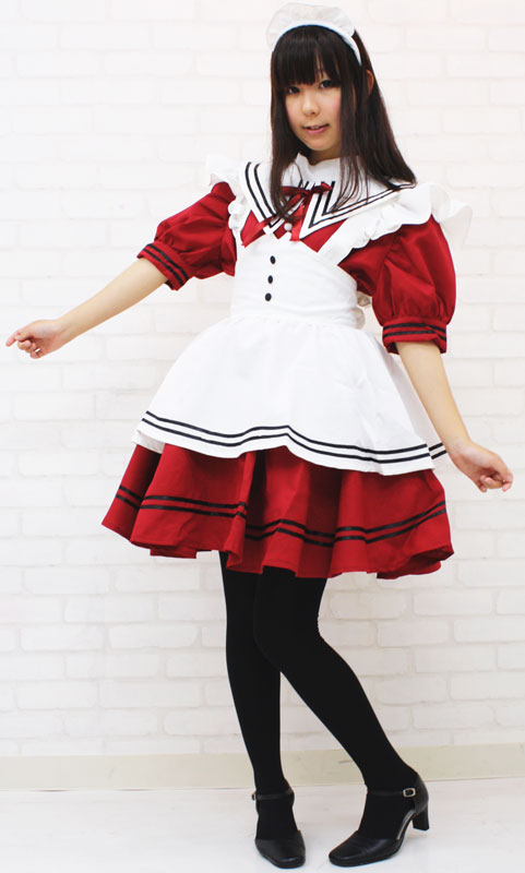 セーラー服を彷彿とさせるエリ付きのメイドコスチューム(エンジ)。肩紐にふんわりフリルが付いたハイウエストのエプロンと、お揃いカチューシャが可愛い!ワンピースのスカートは、ゆったりとした動きやすい長さのデザインです。※水洗い不可、塩素系漂白剤による漂白不可、アイロンは中温で当て布使用、ドライクリーニング可、色落ちの可能性があります。※こちらの商品は在庫の状況によりお届けまでに4日〜7日程度かかる場合がございます。