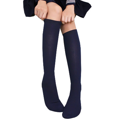 制服ソックスと言えばやっぱりコレ!綿リブ編みの紺ハイソックス。リブの細い縦ラインで、すっきりとした足元に!定番のひざ下丈デザインで、セーラー服などのコスプレ衣装はもちろん、普段使いも出来る万能アイテムです。※こちらの商品は在庫の状況によりお届けまでに4日〜7日程度かかる場合がございます。