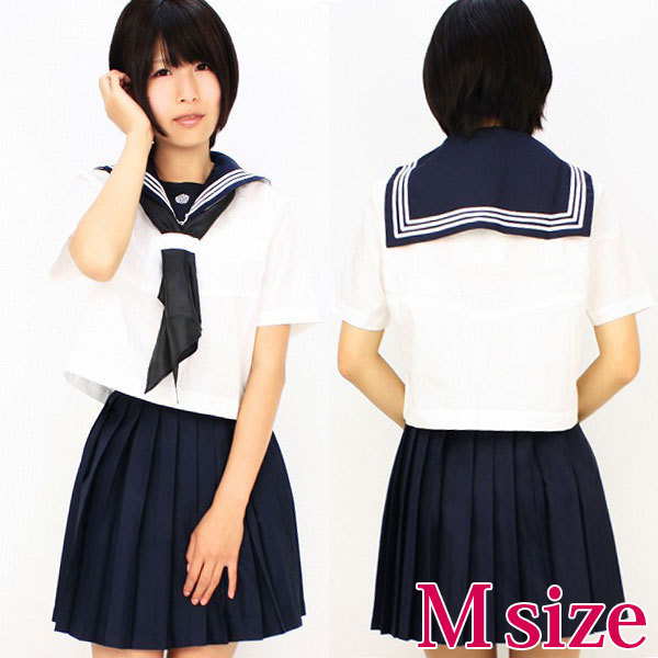 セーラー服の胸当てがワンポイントで、シックなカラーのスカーフが落ち着いた雰囲気の半袖セーラー服です。胸当ての刺繍が可愛い上着は、サイドファスナー仕様、スカートはアジャスター付き♪しっかりとした作りで、クオリティの高いお嬢様系制服コスチュームです。二次元サブカル界で見られるセーラー服の制服には、ほとんどが関東襟タイプで、胸当て(胸元にある逆三角形の覆い)の有無で好みが分かれますが、当店のセーラー服コスプレのラインナップには胸当てが取り外し出来たり胸当てが無いセーラー服もあるなどバリエーションも豊富!まずはこちらの制服コスチュームで学生服のコスプレ気分を満喫してください。セーラー服の冬服(cm0388)はこちらになります。※水洗い不可、塩素系漂白剤による漂白不可、アイロンは中温で当て布使用、ドライクリーニング可、色落ちの可能性があります。※こちらの商品は在庫の状況によりお届けまでに4日〜7日程度かかる場合がございます。