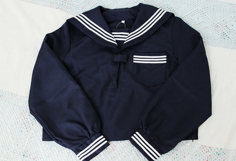 Mサイズ:B78〜94cm 丈:上衣46cm(袖丈54cm、肩幅39cm) セット内容:冬服セーラー上衣単品(サイドファスナー、胸当て取り外し可)