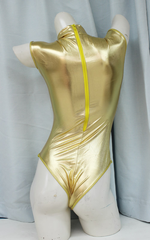 カラダのラインが綺麗に出る素材と、ゴールドカラーが美しいハイネックのレオタード(BIG)。ボディはピッチリ隠して、しなやかな腕と脚は剥き出しに!腰をくねらす度によれるクロッチとヒップが、マニアックエリア好きにはたまりません!伸縮性のある生地なので、バストもクビレも浮き彫りに!ハイネックがストイックな印象…だけど、それが逆にそそられるセクシーコスチュームです。※水洗い可、塩素系漂白剤による漂白不可、ドライクリーニング可、色落ちの可能性があります。※こちらの商品は在庫の状況によりお届けまでに4日〜7日程度かかる場合がございます。