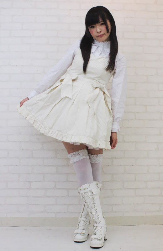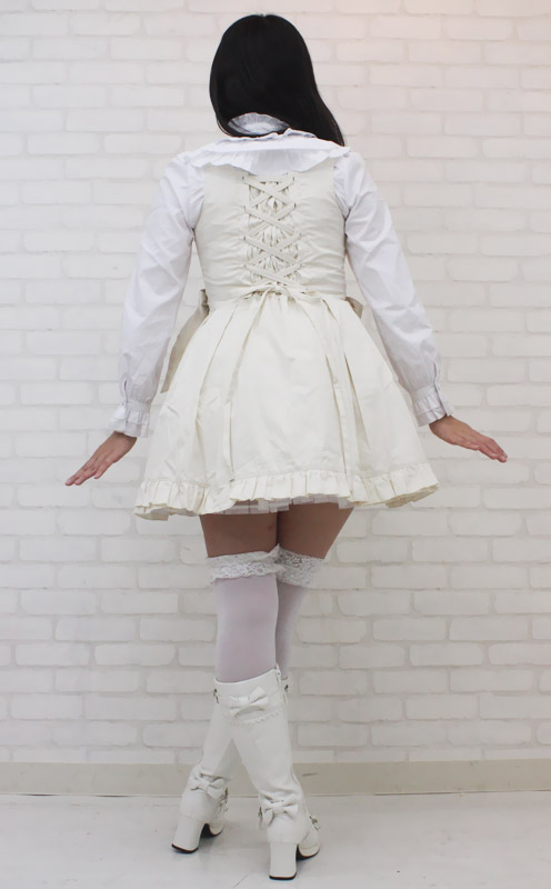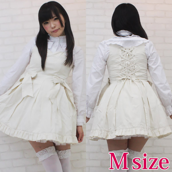ふんわりフリルが可愛いロリータ服!クラシカルで上品なオフホワイトのジャンパースカート&長袖ブラウスセット(M)。パニエが一体型になっているので、簡単に着こなせます。ウエスト両サイドのリボンが印象的!背面の編み上げはバックスタイルをキュートに見せます。胸元の刺繍モチーフも美しく、細部に至るまでデザインにこだわりを見せるロリィタ衣装です。※水洗い不可、塩素系漂白剤による漂白不可、アイロンは中温で当て布使用、ドライクリーニング可、色落ちの可能性があります。※こちらの商品は在庫の状況によりお届けまでに4日〜7日程度かかる場合がございます。