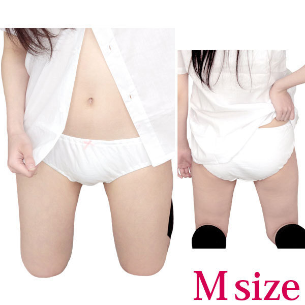真ん中に付いたピンクリボンがキュートな純白の綿パンツ(M)。ミニスカートのコスプレ衣装とあわせれば、萌え〜な見せパンとしてもバッチリ活躍!素朴な雰囲気がたまらない、優しい肌触りの綿100%ショーツです。※水洗い可、塩素系漂白剤による漂白不可、アイロンは中温で当て布使用、ドライクリーニング可※こちらの商品は在庫の状況によりお届けまでに4日〜7日程度かかる場合がございます。