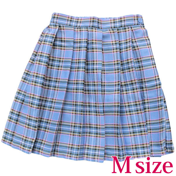 これを着れば、女子校生に逆戻り!?制服コスプレを楽しむうえで欠かせないのが、このプリーツスカート単品(M)です。水色をベースに、ピンクと黄色のチェック柄で可愛くキュートに仕上げられています。普段使いもできるので、一枚は持っておくと便利ですよ。※水洗い不可、塩素系漂白剤による漂白不可、アイロンは中温で当て布使用、ドライクリーニング可、色落ちの可能性があります、ご注意ください。※こちらの商品は在庫の状況によりお届けまでに4日〜7日程度かかる場合がございます。