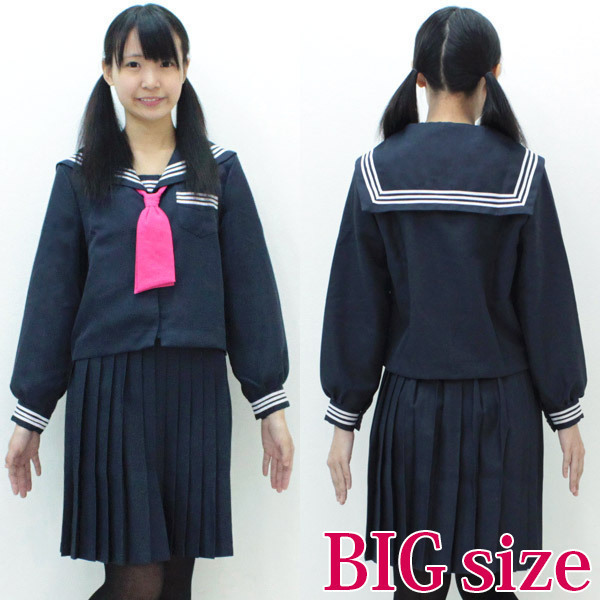 ネイビー×プリーツスカートがお嬢様風!シンプルが一番可愛いと思わせる、定番セーラー服の冬服コスチューム。長袖セーラーで見えませんが、スカートは背中でクロスさせる吊りスカート仕様。見えないところまで本物そっくりのクオリティが嬉しい、制服衣装の3点セットです。※水洗い不可、塩素系漂白剤による漂白不可、アイロンは中温で当て布使用、ドライクリーニング可、色落ちの可能性があります、ご注意ください。※こちらの商品は在庫の状況によりお届けまでに4日〜7日程度かかる場合がございます。