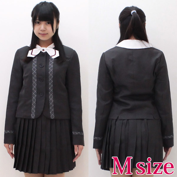 みんなの憧れ!凝ったデザインに注目したいお嬢様学校風の制服コスチューム。袖に縫いこまれたクラシックな刺繍がお洒落!チェックの部分使いが特徴的な濃紺ジャケット、エンジライン入りのリボンがお洒落な白シャツ、ミニ丈がセクシーなプリーツスカートが可愛い制服3点セットです。※水洗い不可、塩素系漂白剤による漂白不可、アイロンは中温で当て布使用、ドライクリーニング可、色落ちの可能性があります、ご注意ください。※こちらの商品は在庫の状況によりお届けまでに4日〜7日程度かかる場合がございます。