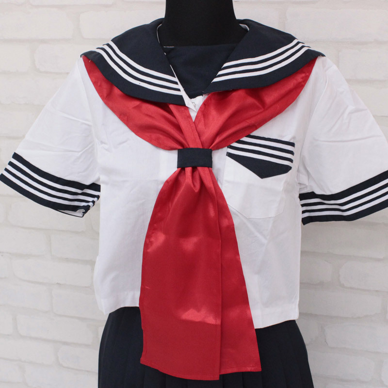 存在感バツグン!セーラー服コスプレには欠かせない、赤色サテンの大きめスカーフ(単品)。全長165cm、幅12cmの帯状タイプなので、クルッと襟下に巻くだけの簡単仕様。リボン結びだけでなく、スカーフ留めに通すだけでもOK!アレンジ自在の優秀アイテムです。※水洗い不可、塩素系漂白剤による漂白不可、アイロンは中温で当て布使用、ドライクリーニング可、色落ちの可能性があります、ご注意ください。※こちらの商品は在庫の状況によりお届けまでに4日〜7日程度かかる場合がございます。