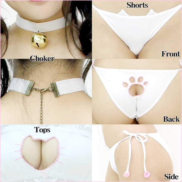 キミのために可愛くなるにゃん♪男女問わずハートを射止めるキュートな猫モチーフの水着が登場しました!フリル×猫のコラボレーション!ブラやショーツに所々取り入れられたネコが乙女心をくすぐります♪さらに後ろで留めるタイプの鈴つきチョーカーも付属。別途で猫耳カチューシャや尻尾を取り入れれば、気持ちは擬人化した猫の気分!?自宅でハロウィンパーティを開くならセクシーな仮装コスチュームとして使えますし、他にも自分へのご褒美や彼へのサプライズ演出にも是非どうぞ♪※水洗い可、塩素系漂白剤による漂白不可、アイロンは中温で当て布使用、ドライクリーニング可、色落ちの可能性があります。