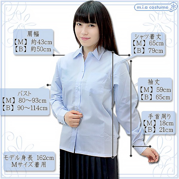 BIGサイズ:着丈79cm・袖丈65cm・肩幅50cm・手首周り21cm セット内容:シャツ単品 素材:ポリエステル65%、綿35% モデル身長162cm(Mサイズ着用)