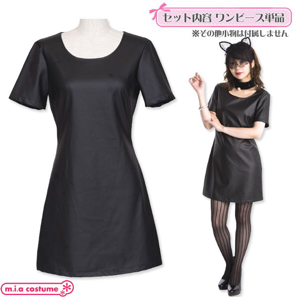 > セレクトコス フェイクレザーワンピース ブラック