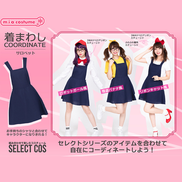 優秀な着回し力が自慢のコスプレシリーズ!セレクトしてオリジナルのコーディネートを楽しもう♪サロペットはポップなテイストにぴったり。帽子やTシャツを合わせれば、色々なキャラになりきれちゃう!他にもセレクトシリーズの小物を合わせてコスプレを楽しんでね。※洗濯機不可、弱い手洗い可、塩素系漂白剤による漂白不可、アイロンは中温で当て布使用、石油系ドライクリーニング可