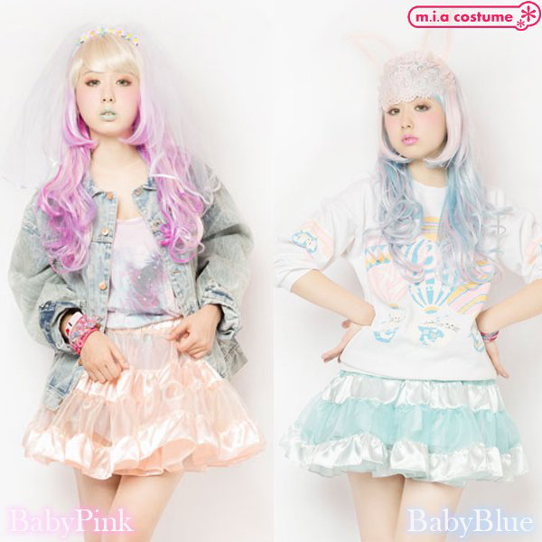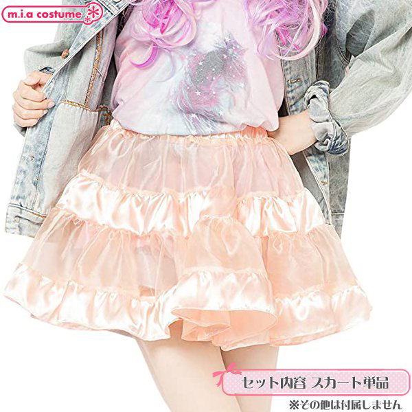イベント用のコスプレやパーティー用としても良さげなコスプレです♪サテンの光沢感とシースルー素材の組み合わせがとても可愛いティアードスカート!重ねるボトムスで様々なコーディネイトを楽しみつつ、甘いベビーピンクが優しい印象を与えてくれます♪ふんわり広がるガーリィな印象とシルエット。原宿系ファッションとしてもポイント高めです♪※洗濯機不可、弱い手洗い可、塩素系漂白剤による漂白不可、アイロンは中温で当て布使用、ドライクリーニング不可