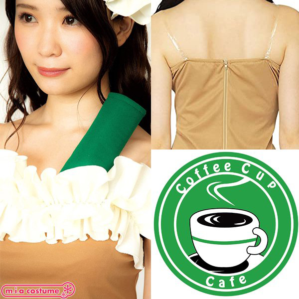 ハロウィン仮装やクリスマスの仮装、変装用のステージ衣装にも!フォームミルクをイメージした胸元のフリルがポイントのワンピースです。ストレッチ素材なので着やすくコーヒーカラーなワンピースが印象的♪付属のシールを胸元に付ければスタイリッシュなカフェスタッフに!舞台衣装としても映えますよ♪※洗濯機不可、塩素系漂白剤による漂白不可、アイロンは中温で当て布使用、ドライクリーニング不可、摩擦や水濡れにより色移りする恐れがあります。