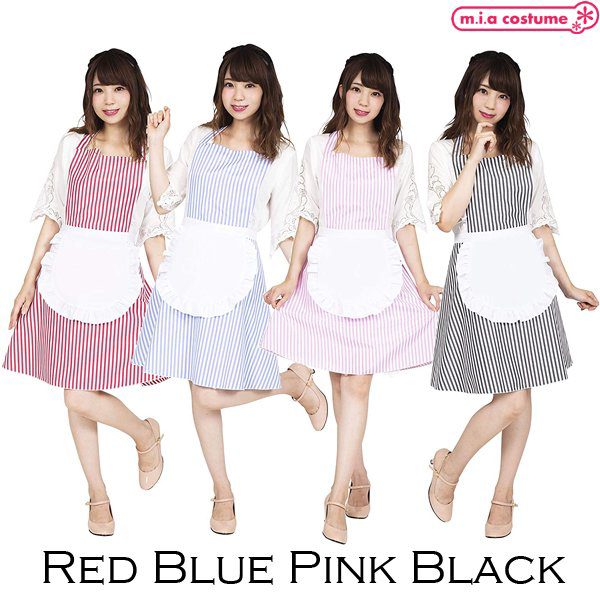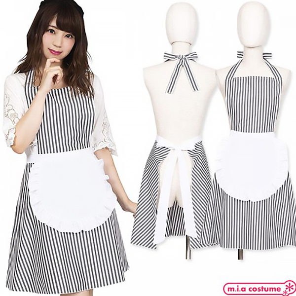 フリルの甘い雰囲気をストライプで!大人可愛い印象の細めのストライプ柄が特徴のエプロンです♪ウエストの白いフリルエプロンは一体型!首と腰でリボン結びするタイプだから体型に合わせてサイズの調整が可能です♪キッチンだけでなく、お料理教室、ギフト、ホームパーティーにも!アメリカンダイナーやウェイトレス風にもコーディネート出来るので学園祭、カフェイベントでの使用にもおすすめです。※洗濯機不可、弱い手洗い可、塩素系漂白剤による漂白不可、アイロンは中温で当て布使用、ドライクリーニング不可
