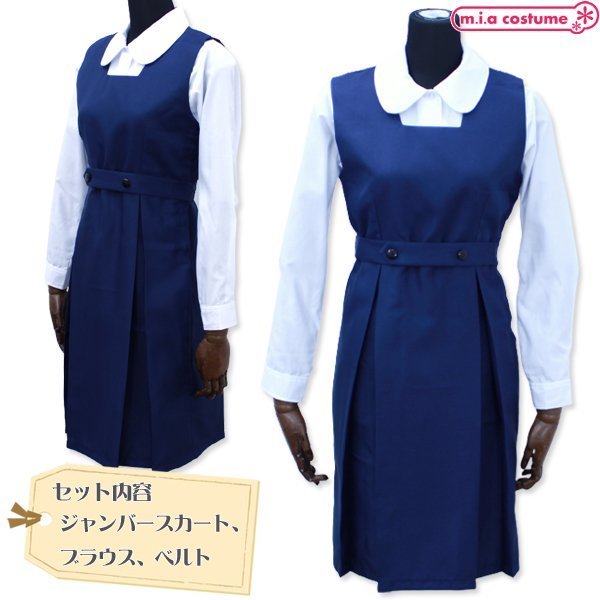 憧れの超名門女子校の制服にBIGサイズが新登場♪シンプルながら洗練されたデザインでお嬢様度が高く、ウエストのベルトが特徴的!セット内容は前ボタン式のブラウスにジャンバースカート、ベルトと充実♪学園祭の催し物などにもおすすめのコスプレ衣装です。※水洗い可、塩素系漂白剤による漂白不可、アイロンは中温で当て布使用、ドライクリーニング可、色落ちの可能性があります。※こちらの商品は在庫の状況によりお届けまでに4日〜7日程度かかる場合がございます。