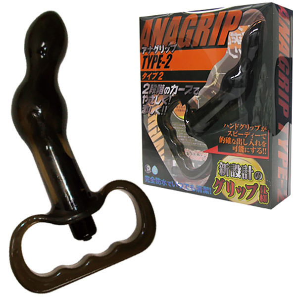 グッと握れるハンドグリップ!お尻の穴をしっかり刺激する電動アナルグッズです。ストッパー兼用の持ち手をグリップ式にしたことで、しっかりとした操作が可能になりました。こちらの「TYPE-02」は、ひょうたん型の先端が腸壁や前立腺を刺激しやすく工夫されています。底部にスティックローター内蔵!完全防水仕様、クリアブラックのシリコン製アナルバイブです。単4電池×1個付属。