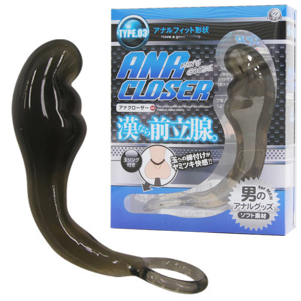 漢なら黙って前立腺マッサージ!前立腺刺激に特化したソフト素材のアナルグッズ「アナクローザー TYPE.03」。ボディの緩やかなカーブで挿入をサポート!先端はアナルにフィットするよう作られており、まるで指でかき回されるような感覚を味わえます!リング状の持ち手部分は、射精時の快感をより高める玉掛けリングとしてもお使い頂けます。
