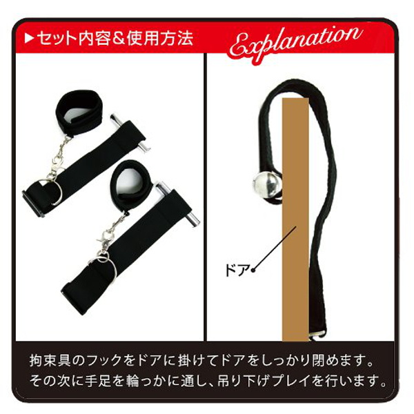 A-ONE×イラストレーター尾髭丹氏による最強コラボから新商品が発売!その名も「ELock イーロック(ドア腕拘束)」。跡を残りにくくするため、手首に直接触れるバンド部分にソフトなウレタン素材を採用!バンドはマジックテープ仕様なので、サイズ調節や一人での着脱もラックラク!また、ドアに吊り下げる引っ掛け部分のベルトも長さ調節可能です。いつもと違った拘束プレイでパートナーとのマンネリ解消!?ソフトからハードまでのSMプレイを満喫できる拘束グッズです。※設置場所の状態を確認してからご使用ください。