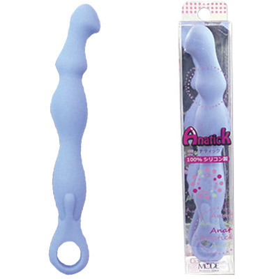 緩いカーブがお尻にマッチ!ピュアシリコン製、優しいブルーのアナルスティック。鈎針のようなカリで前立腺をスリスリ!丸みのある先端と素材の弾力により、無理のない挿入感が得られます。たっぷりとローションを塗ってグラインドさせるとアヘアヘ状態に…!φ17〜26mmの別売ローターを指かけフックに装着すれば、シリコンスティックから簡易アナルバイブへ変身します。