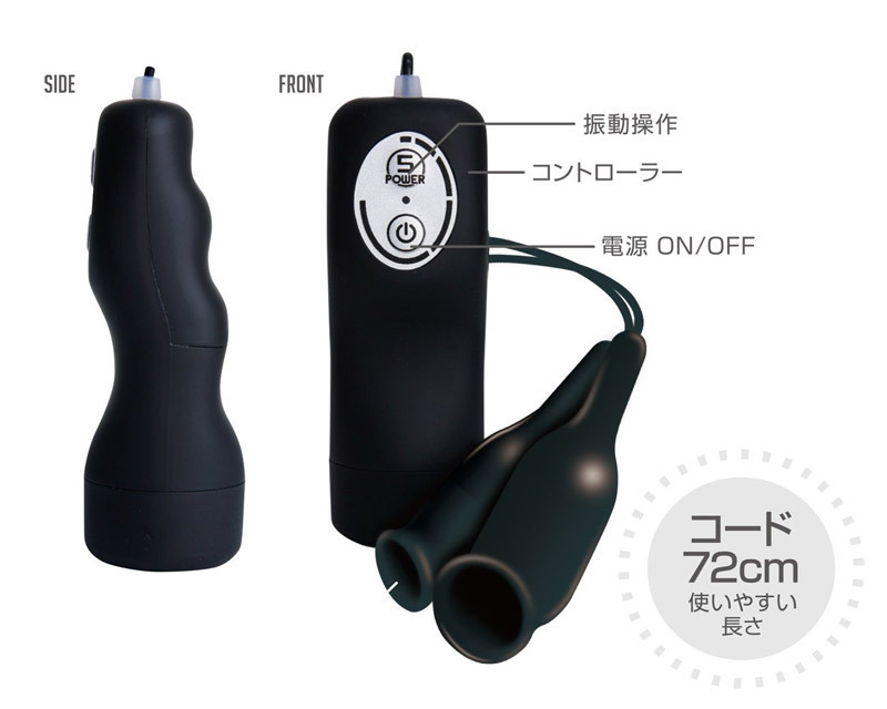 激振動で乳首&クリトリスをポイント責め!ロングプレイでもシビレにくいグリップ付きローター「ビブラル」のピンポイント刺激バージョン。●二ヶ所同時責め可能なツインヘッド●すっぽり覆ってズレにくいドーム型●握りやすい持ち手が指のシビレを軽減●MAX15000回転の繊細バイブレーション●弱〜激振動まで5パターン搭載●リモコンはワンボタンの簡単操作●滑らかシリコン加工&生活防水仕様●使い勝手抜群のコード長72cm。乳首やクリトリスを包み込みながら刺激できるドーム型のダブルローター!しなやかに曲がるシリコンの持ち手もポイントキープに一役買っています。