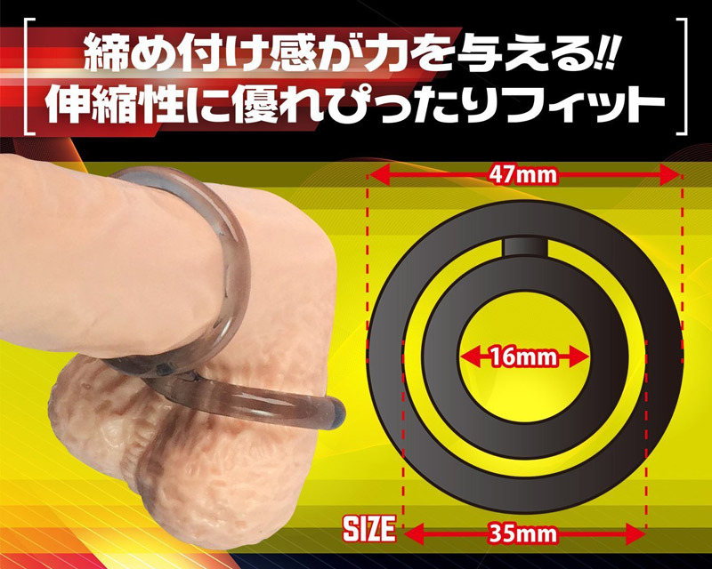 異なるサイズのダブルリングがハードに締め付けるシリコン製コックリング。●レグノコックリングシリーズ●ブラックスモークシリコン製●大小2サイズのリングが一つに●内径:大35mm・小16mm●サオとタマをハードに締め付け。あらゆるサイズに対応する優れた伸縮素材で、大小リングはサオとタマどちらでも装着可能!ハメ方次第で持久力や勃起力、射精力までサポートしてくれる万能ペニスリングです。